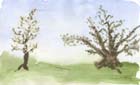 This was the first painting of the day. I was enjoying the dark greens and the lit up greens. I was having trouble working around he small flowers. |
